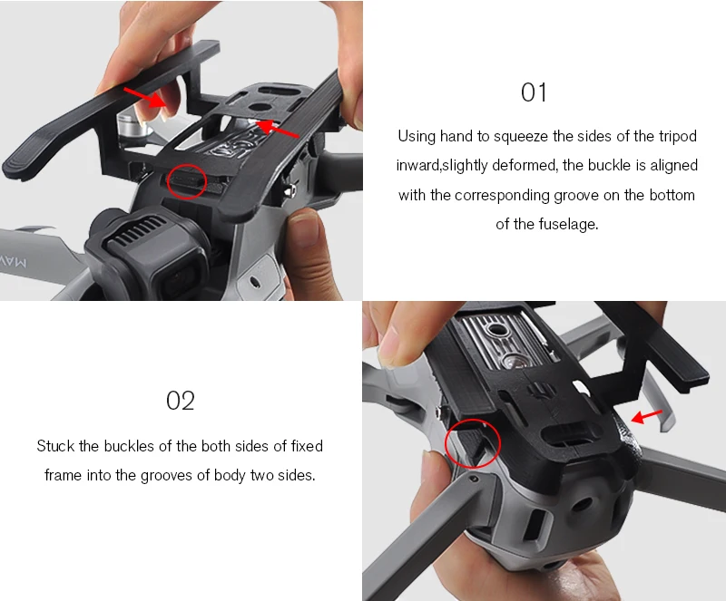 1. Выдавливайте сторону штатива внутрь вручную, слегка деформируясь, пряжка выровнена с соответствующим канавкой в нижней части фюзеляжа.