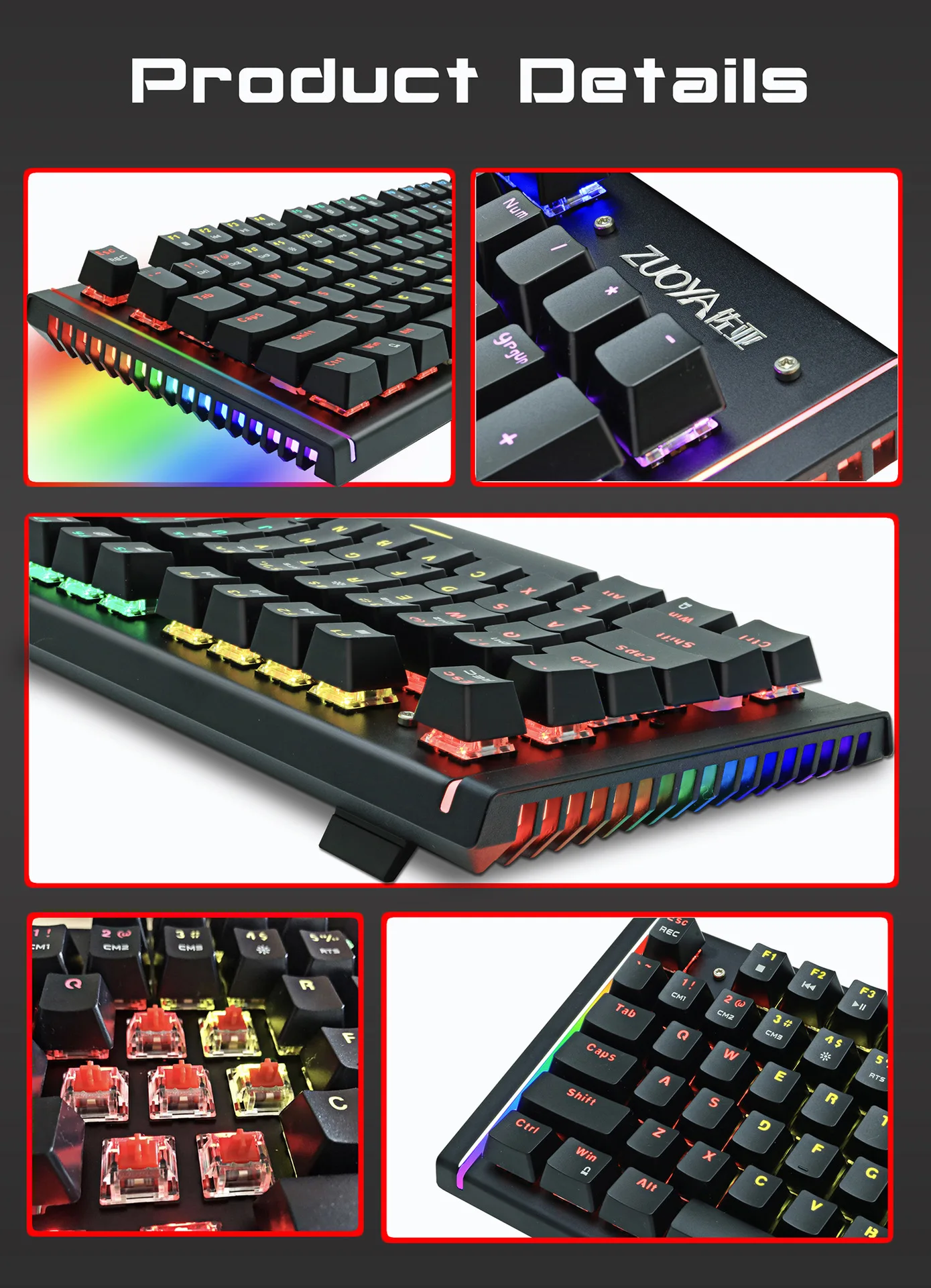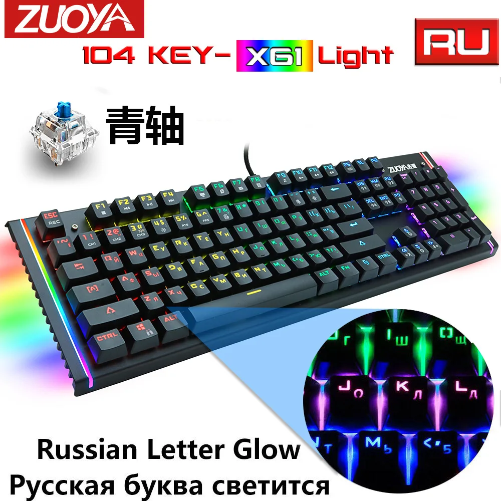 Zuoya x61 игровая машина клавиатура зеленая ось красная ось светящаяся клавиатура RGB металлическая русская английская клавиатура 104 клавиши Все клавиши без удара