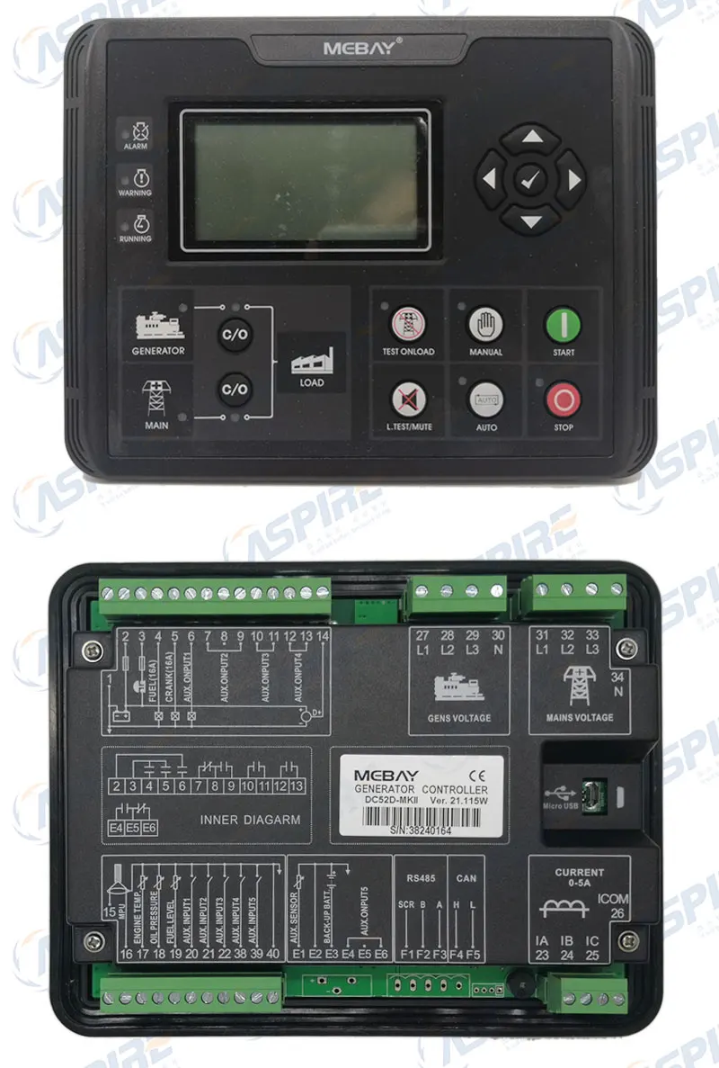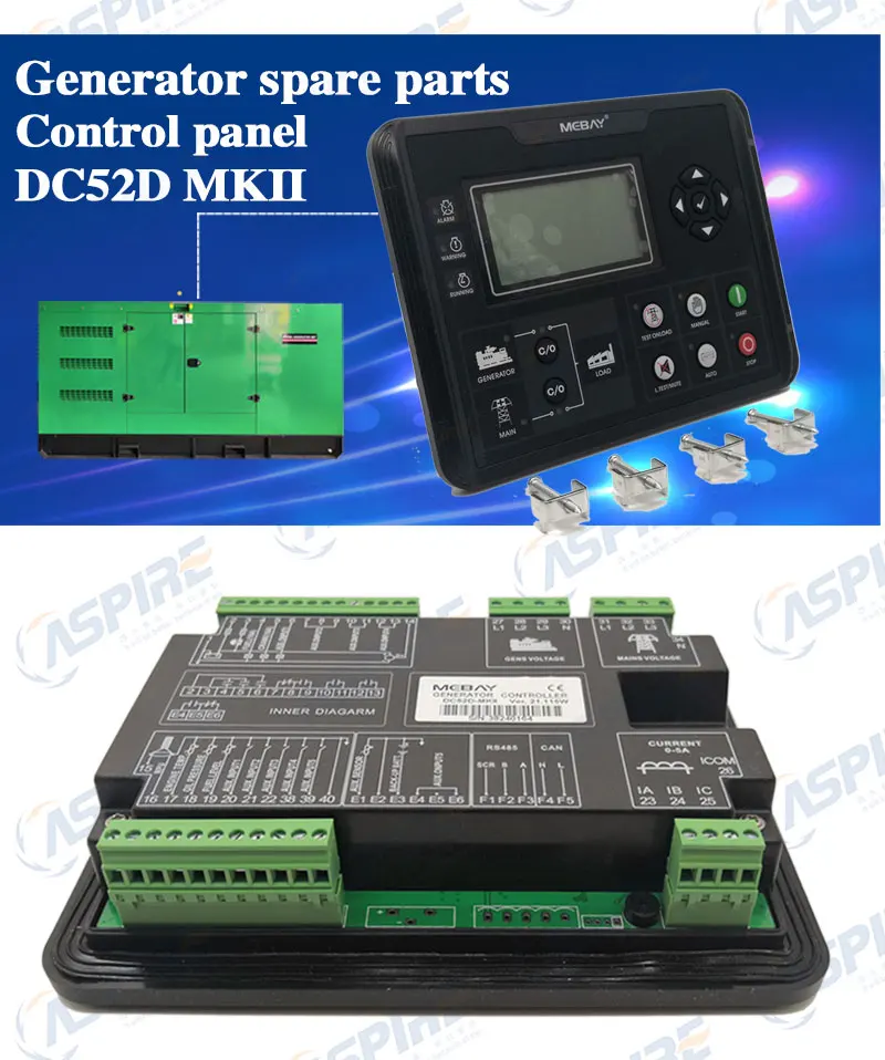 DC52D MKII специализируется на дизельном/бензиновом/газовом генераторном заводе, остановке, мониторинге параметров, проверке неисправностей, а также настройке данных. 3,5-дюймовый ЖК-дисплей высокого разрешения с совершенно новым дизайном пользовательского интерфейса адаптирован к этому контроллеру, что относительные ошибки могут отображаться непосредственно. Все параметры могут отображаться моделируемыми индикаторами и словами. Кроме того, ЖК-экран может отображать различные ошибки в то же время, что генератор будет остановлен, как только он не может работать гладко. Есть варианты интерфейса на китайском/английском языках, больше языков можно установить в соответствии с запросом пользователя. Все параметры могут быть настроены с помощью кнопок передней грани или с помощью программируемого интерфейса RS485 или USB для регулировки через ПК. Он может быть широко применен для всех видов автоматической системы управления генераторов. Модуль DC52DMKII Рабочее напряжение DC8V-36V непрерывного действия Энергопотребление Режим ожидания: 24 В: макс. 1 Вт Рабочая мощность: 24 В: макс. 5 Вт Номинальная частота 40,0-80,0 Гц (50,0 Гц) Номинальное напряжение 80-360 в (230 В) Номинальный ток 5-6000A(500A) Номинальная мощность 5-2000 кВт (27 кВт) Номинальное напряжение батареи 8,0-36,0 в (24,0 в) Номинальная частота оборотов в минуту 500-4500 об/мин (1500) Уровень защиты IP54