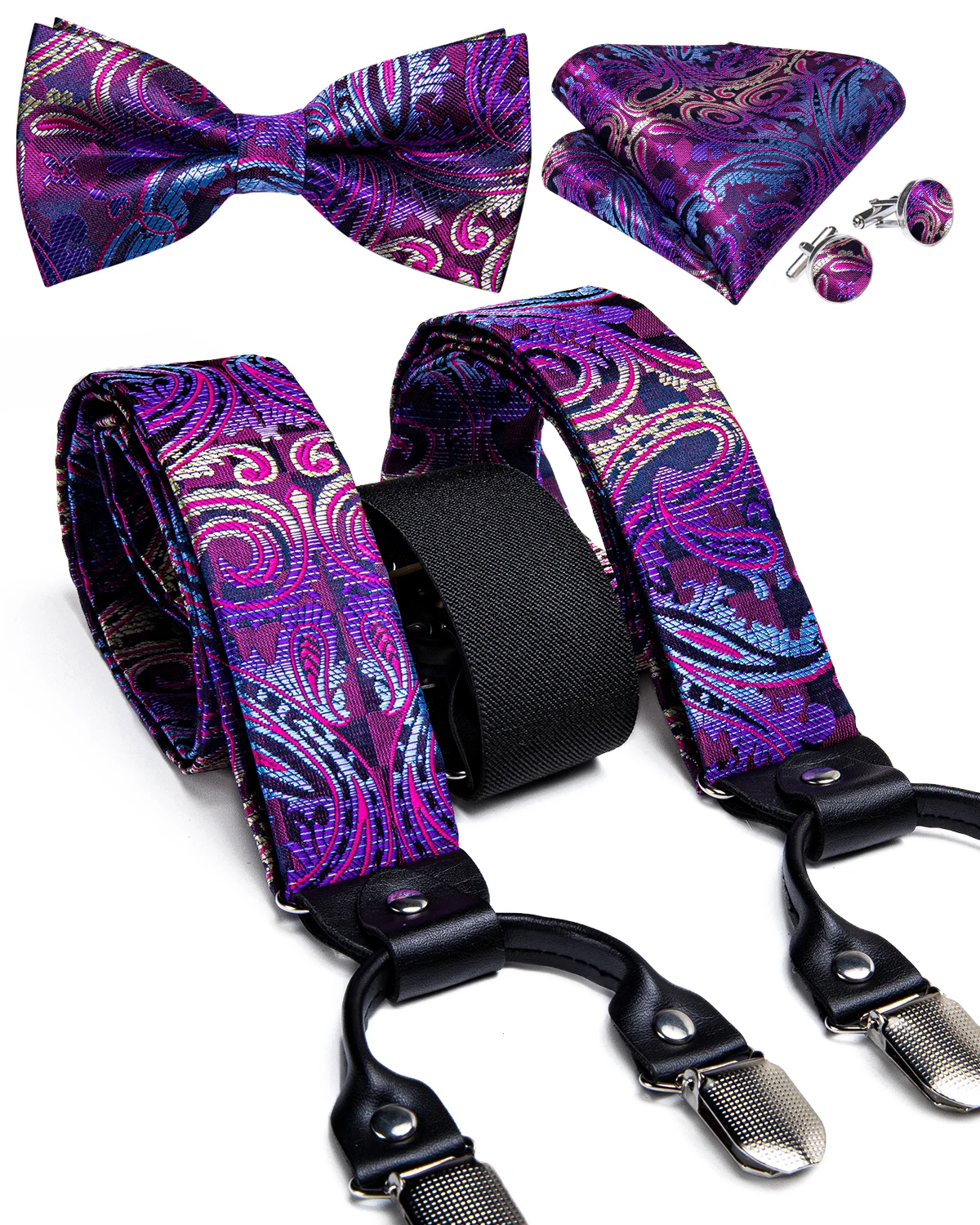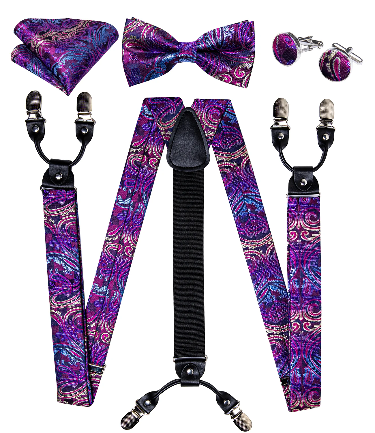 Товар содержит: 1 * подтяжки + 1 * PRE-TIED галстук-бабочка + 1 * Карманный квадрат + 1 пара запонков