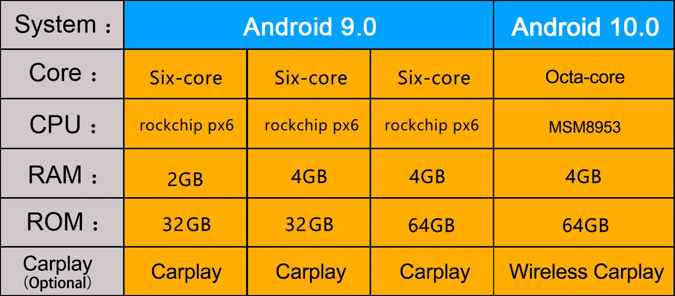 PX6 Процессор: Встроенный carplay, Поддержка Android AUTO Процессор Qualcomm MSM8953: встроенный беспроводной carplay, Примечание: вам нужно использовать usb-кабель при использовании Android AUTO