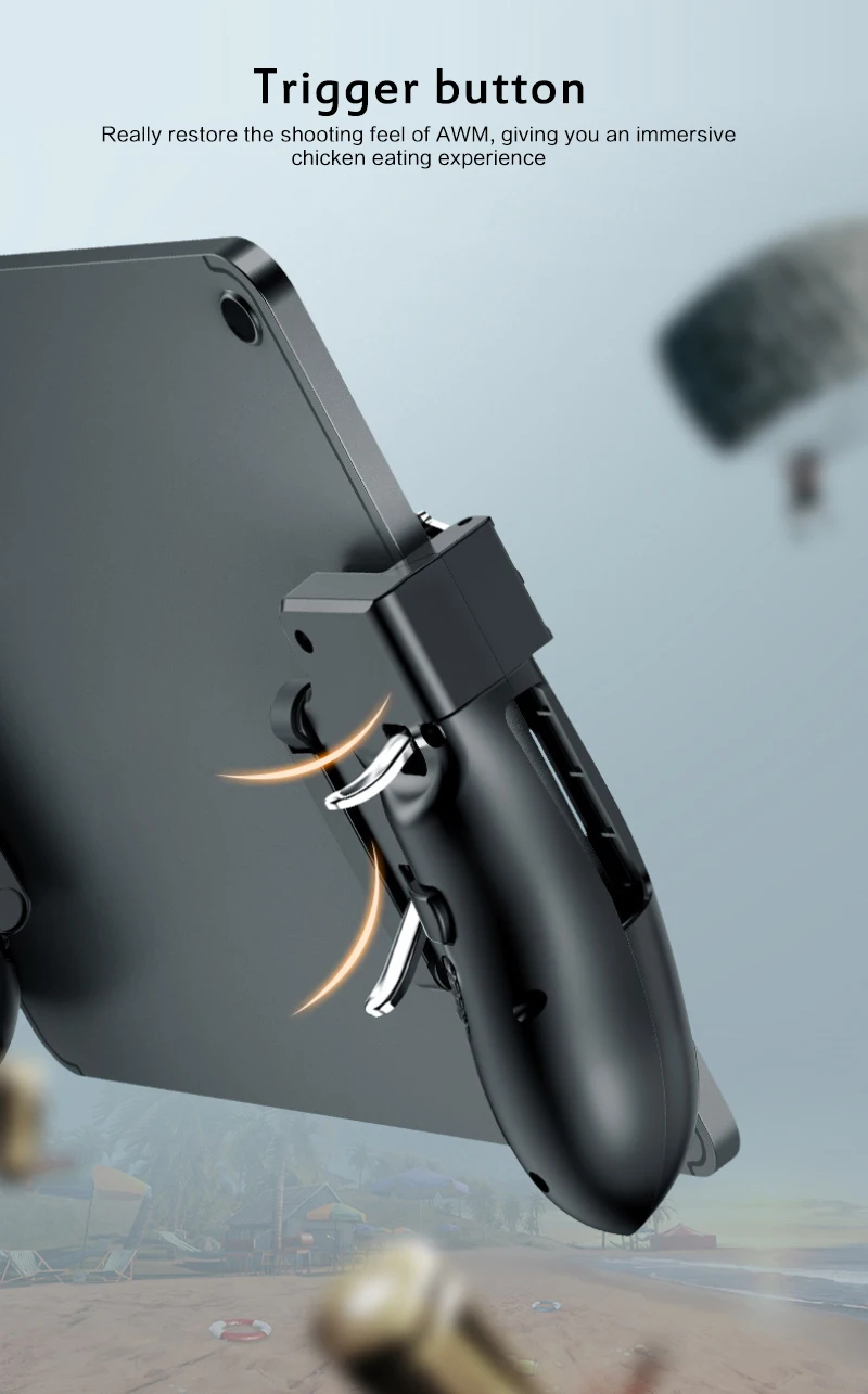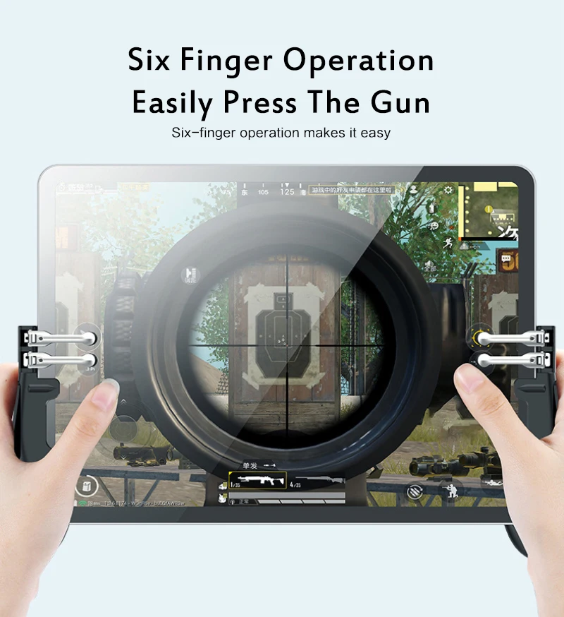 The gamepad and ignition controller are integrated, which has an ergonomic design to make your hand feel more comfortable. Playing mobile game with six fingers to push, rotate, aim and shoot at the same time and say goodbye to finger numbness.
