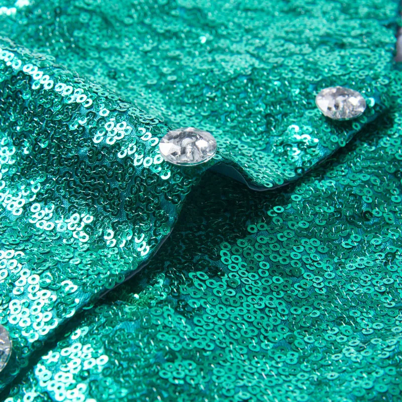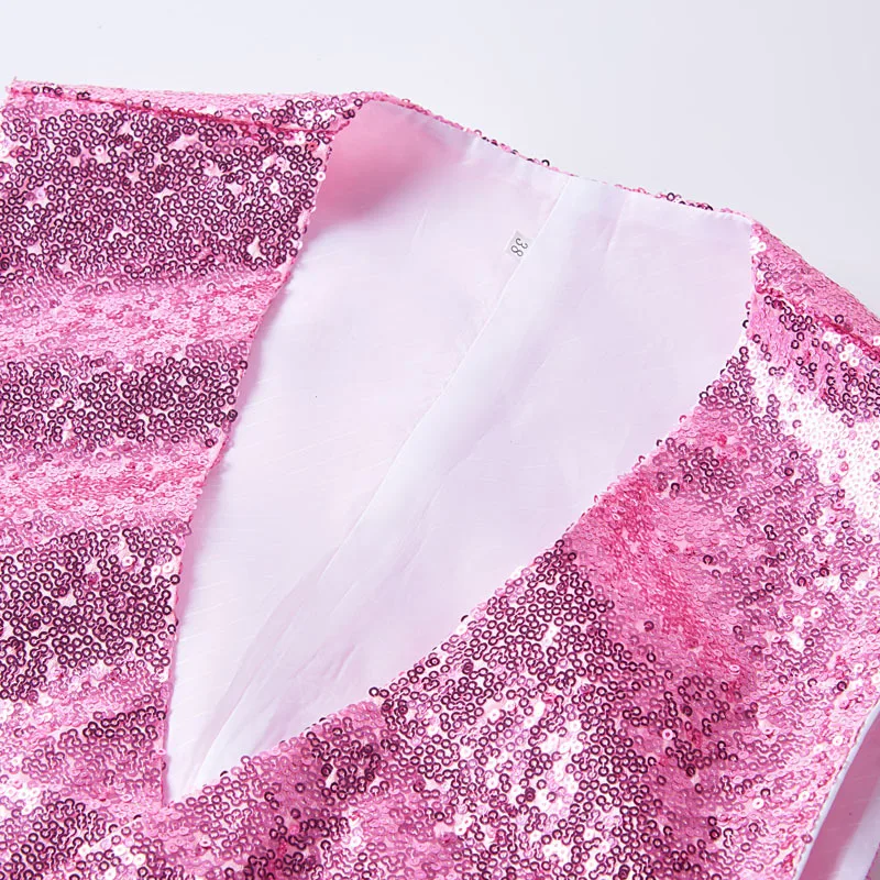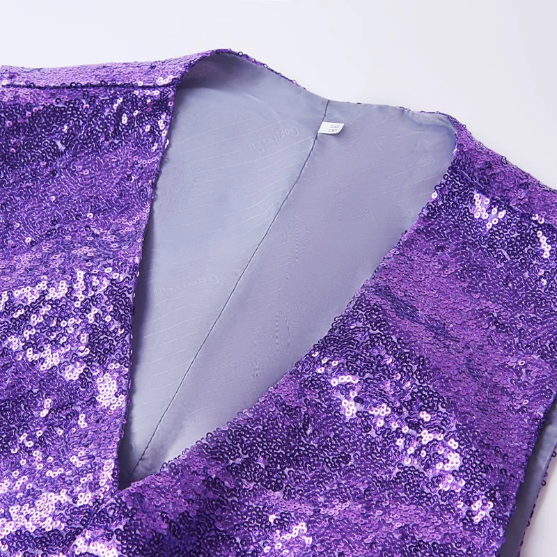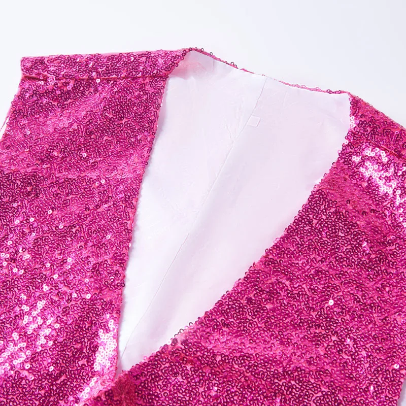 1. Спереди и сзади есть ткань с блестками, подкладка из 100% полиэстера.