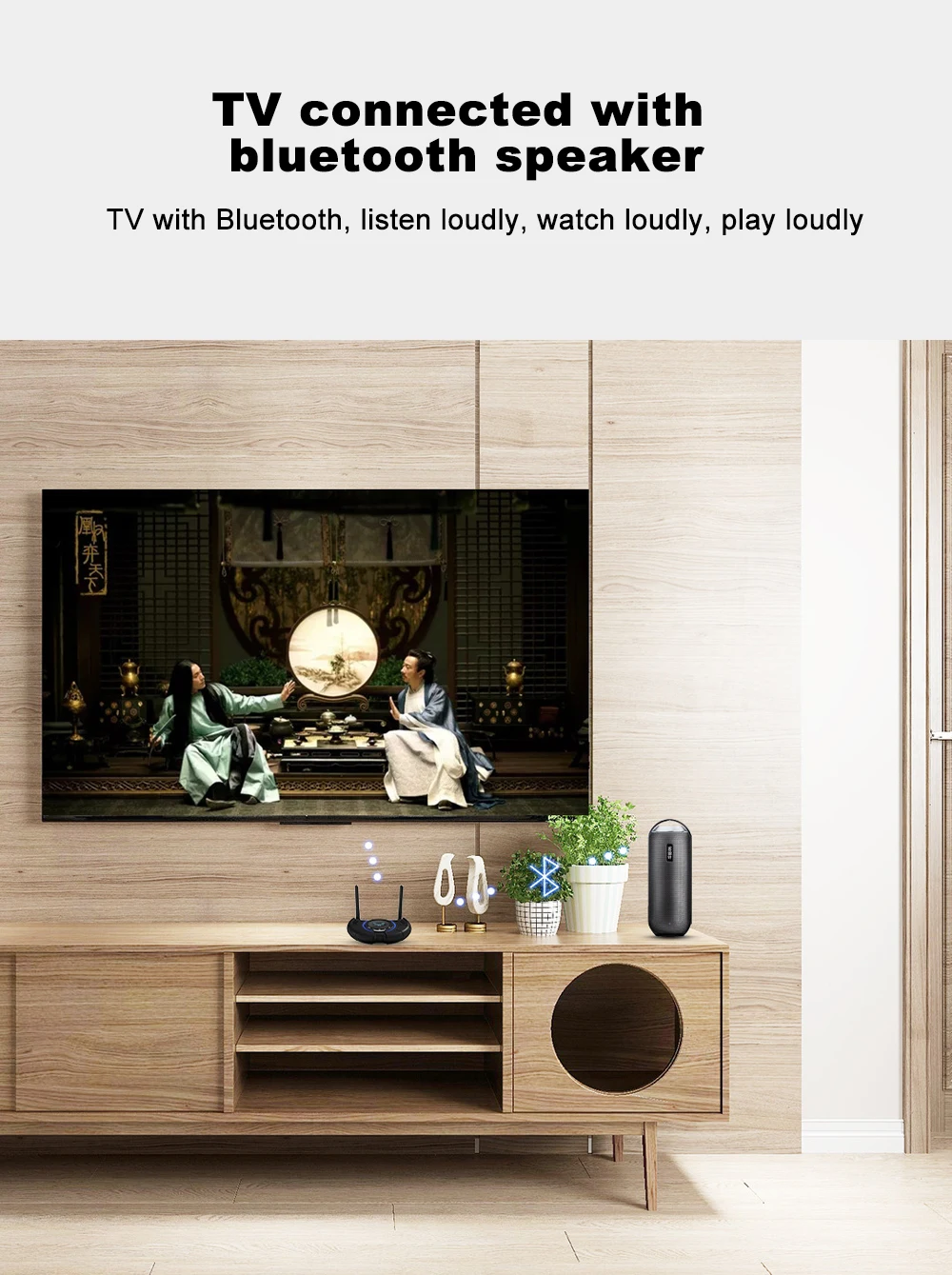 The product has a beautiful appearance. Adopt CSR8675 high-end chip design. CSR's latest ANC noise reduction and echo cancellation technology Support TX dual stream, RX multi-point connectionSPDIF, I2S audio input / output interface, free to switc. Supports SBC, MP3, AAC, apt-X HD, apt-X LL, apt-X LOW LATENCY,apt-X audio format. Support TWS (left and right channel separation) The product is simple to connect, without any driver or downloading the APP. Packaged included: 1*CSR8675 Bluetooth Adapter 1* Optical Cable 1* Charging Cable 1* 3.5mm Femaleto RCA Male Cable 1* 3.5mm Audio Cable 1* User Guide 1* Retail Package
