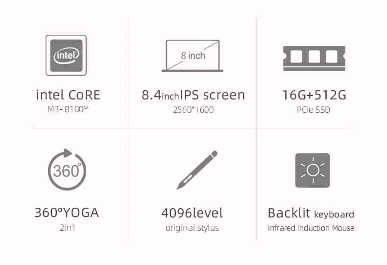 OneMix 3S 8,4 "2560*1600 карман ноутбук с процессором Intel Core M-8100Y 16G 512G Клавиатура с подсветкой 2-в-1 планшетный ПК Win10, Bluetooth, выход HDMI