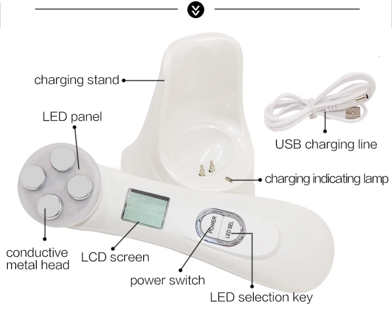 Этот косметический инструмент оснащен EMS током, технологией электропорации, радиочастотой RF и светодиодный, какой он многофункциональный, чтобы он мог решить многие ems кожи.
