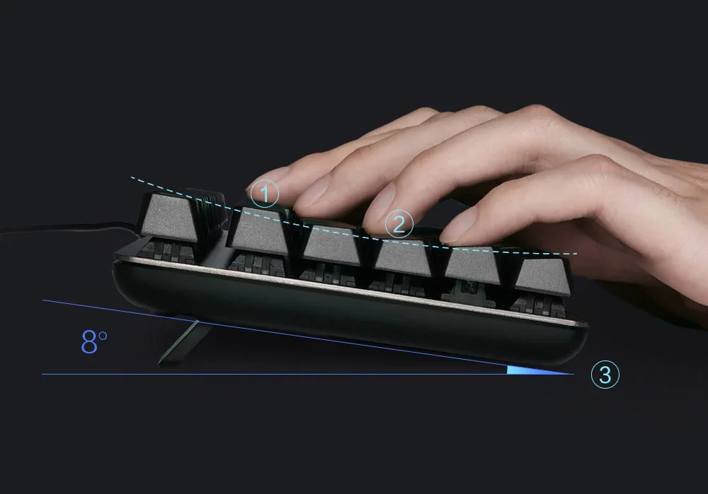 -Эргономичный Наклонный дизайн на 8 °, снимает усталость запястья при использовании