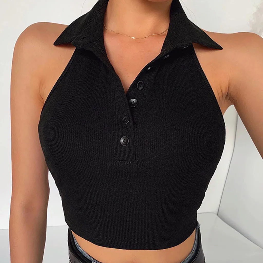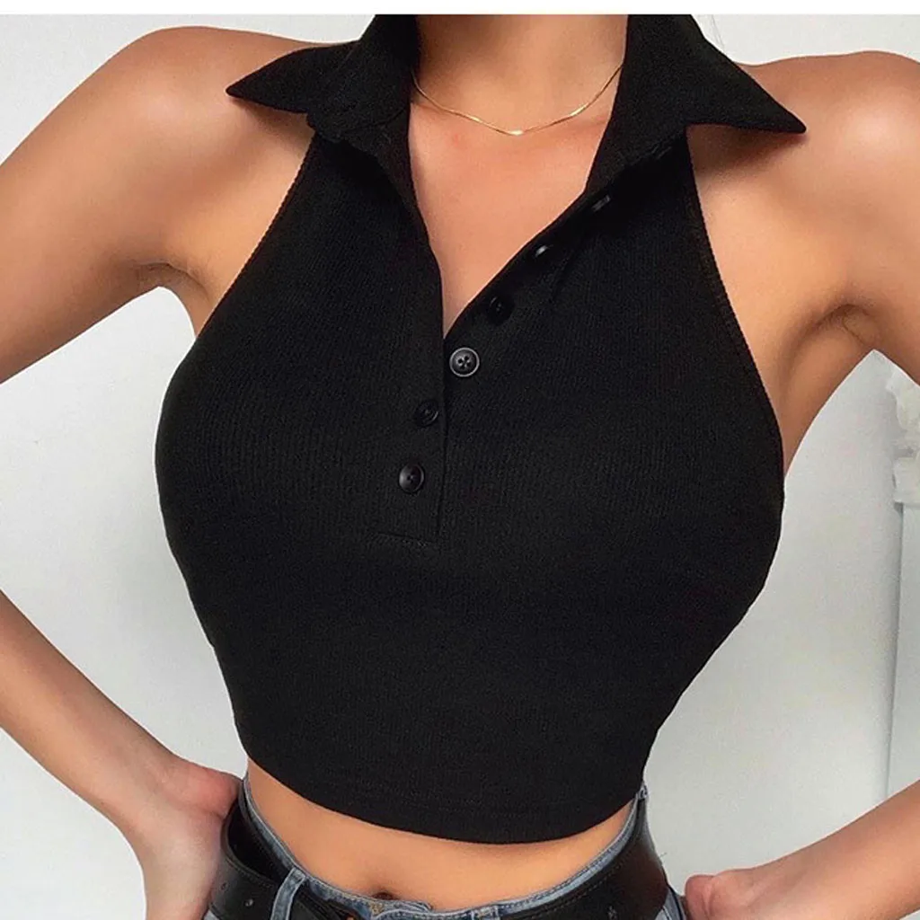 Женская мода v-образный вырез на пуговицах без рукавов тонкий короткий топ жилет Блузка