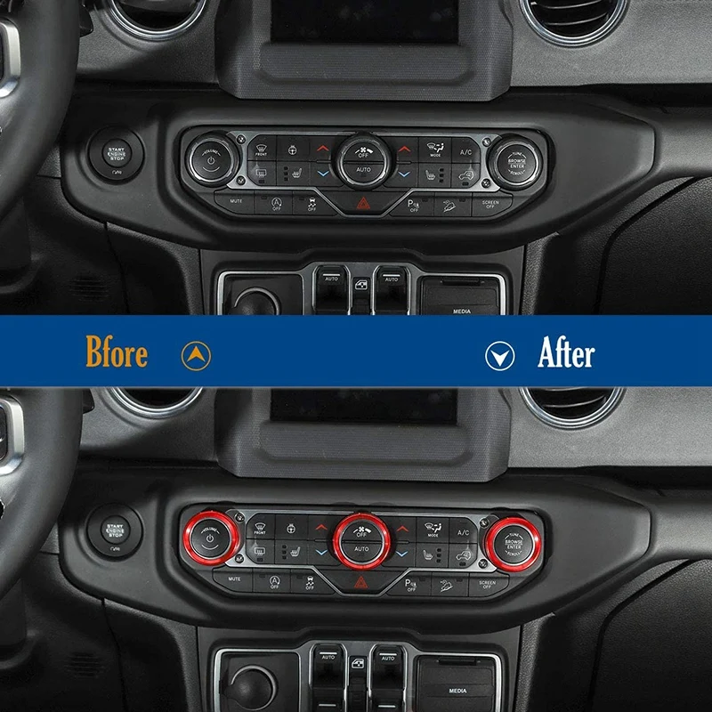 Автомобильный внутренний переключатель фар и регулятор кондиционера, накладка на кольцо для Jeep Wrangler JL JLU 2018-2020