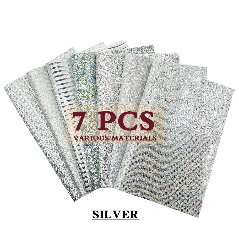 QIBU 7 шт. A4 синтетическая кожа, массивная блестящая ткань, смешанный тип, искусственная кожа для домашнего изготовления, серьги, сумки для рукоделия, аксессуары для рукоделия