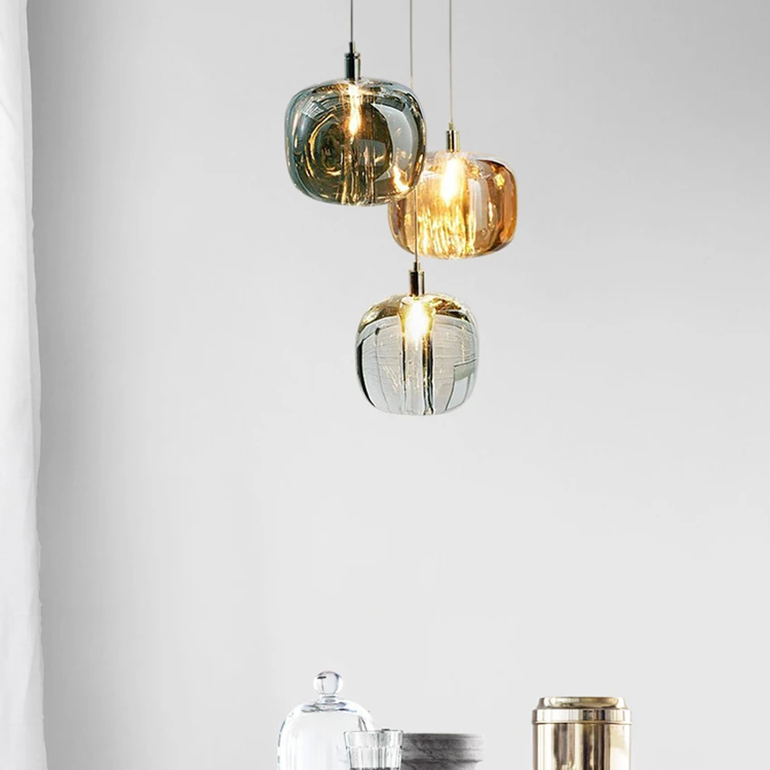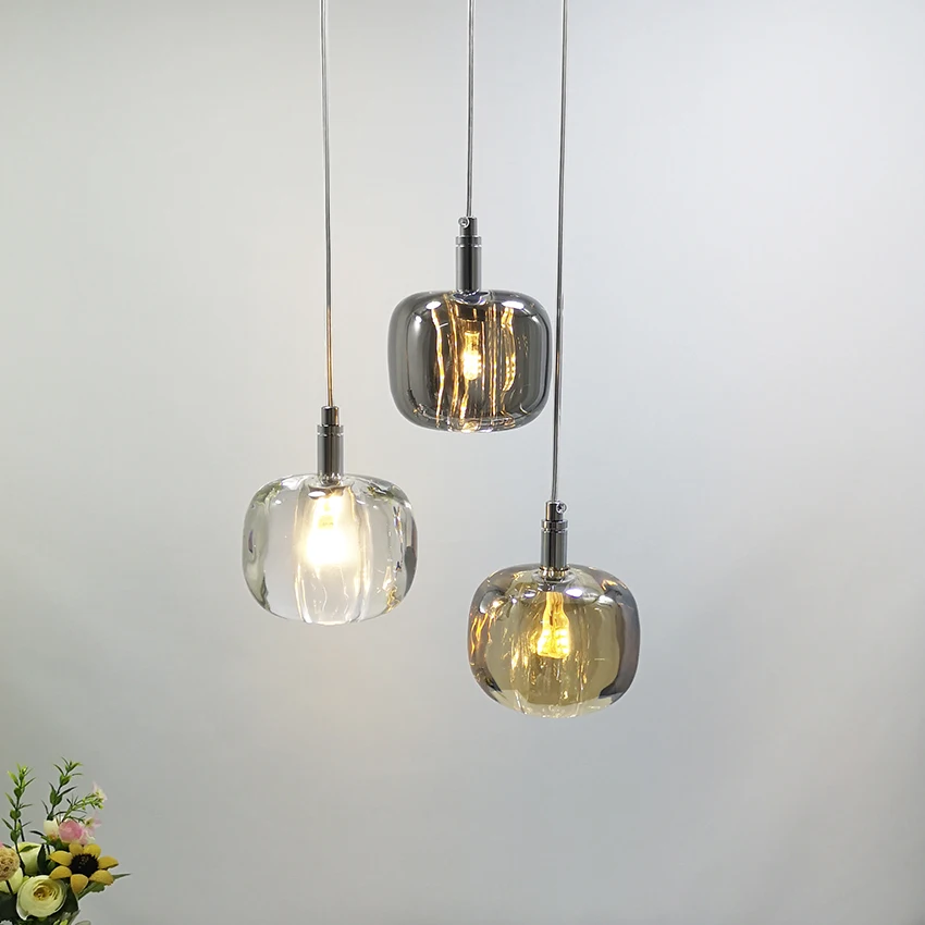Роскошные хрустальные подвесные светильники скандинавский Янтарный серый чистый прикроватный светильник для спальни Подвесная лампа для гостиной столовой Подвесная лампа