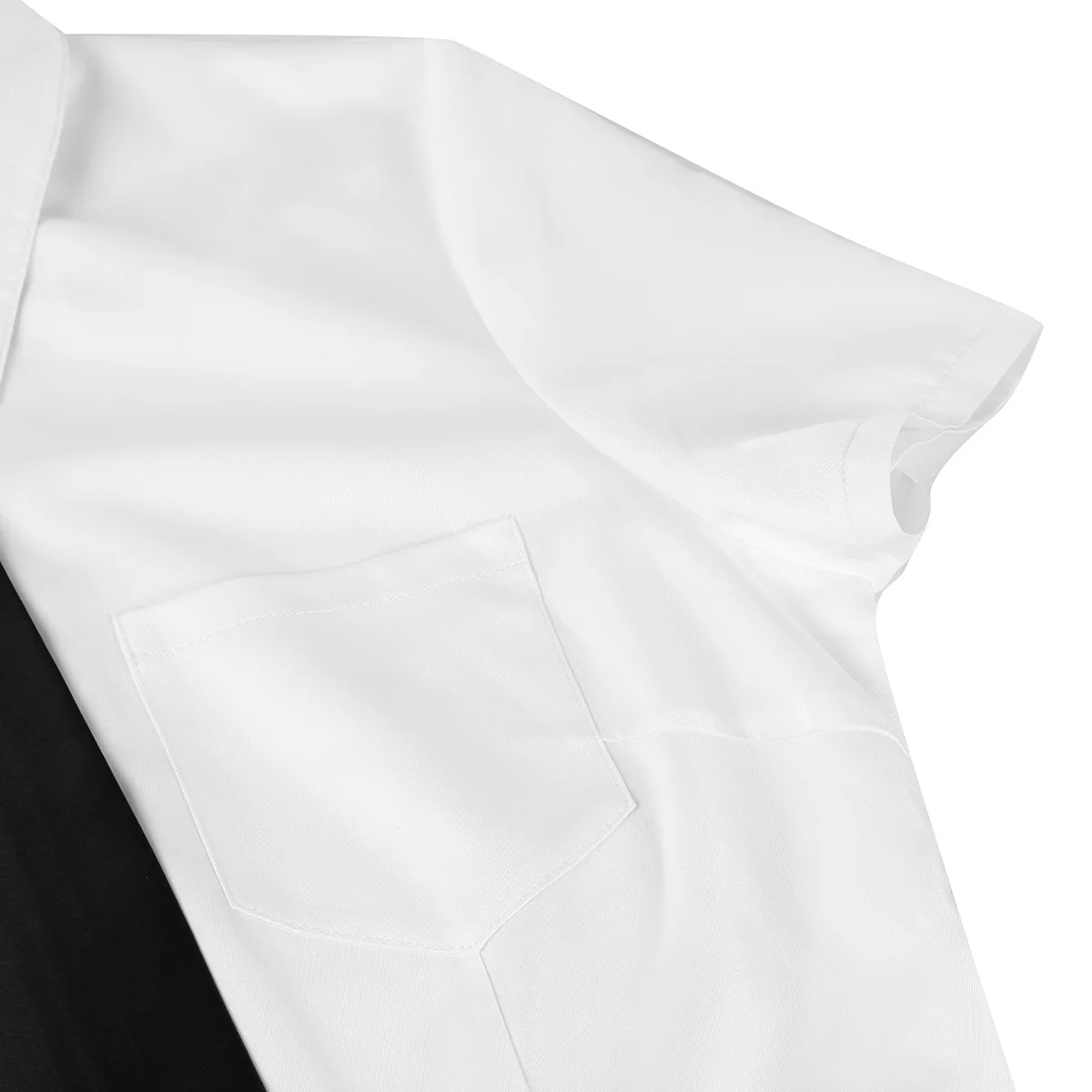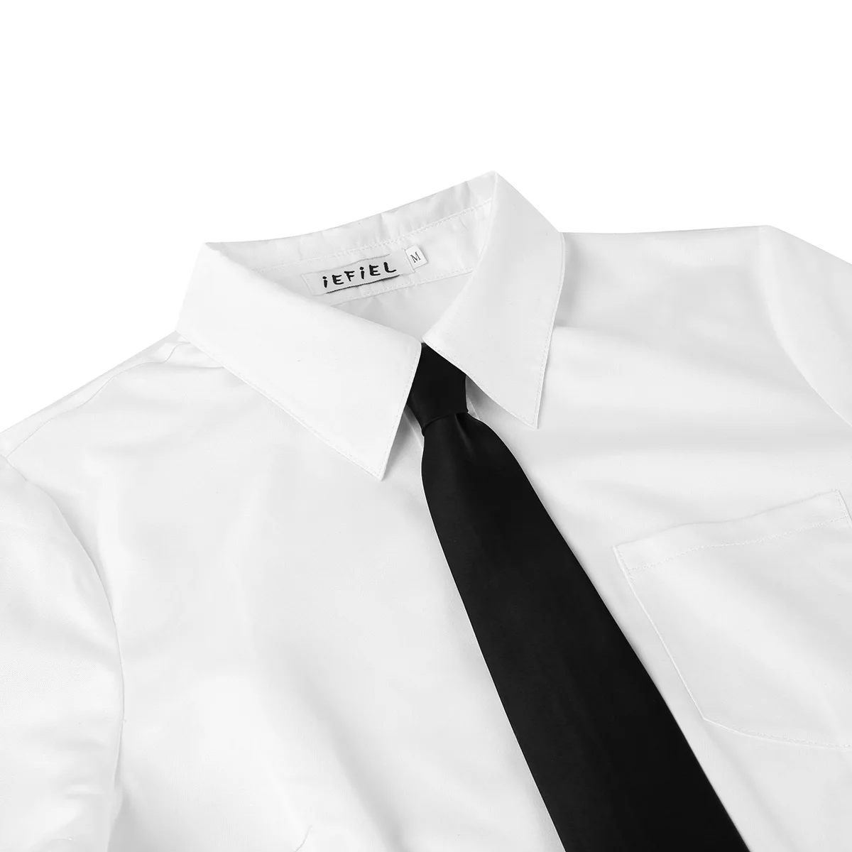 Короткие рукава, отложной воротник, застежка на пуговицах спереди, Черный Съемный галстук для украшения.