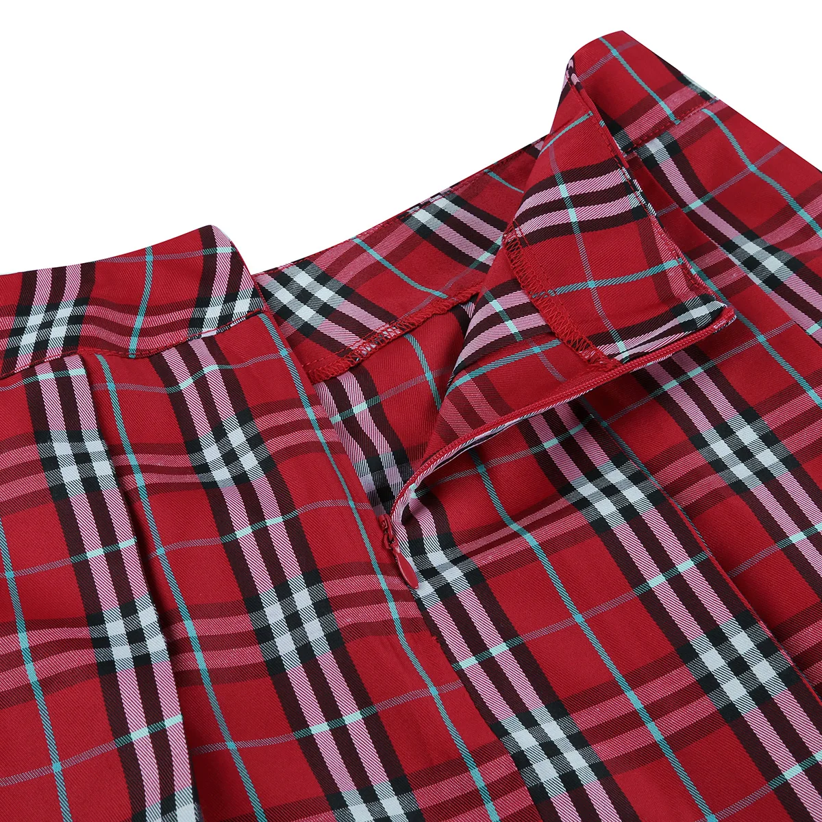 Плиссированная юбка со скрытой застежкой-молнией сбоку и клетчатым узором.