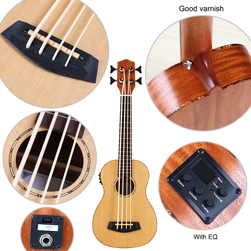 30 inch electric ukulele bass guitar full okoume wood guitar body natural color 4 string mini uk bass guitar children gift