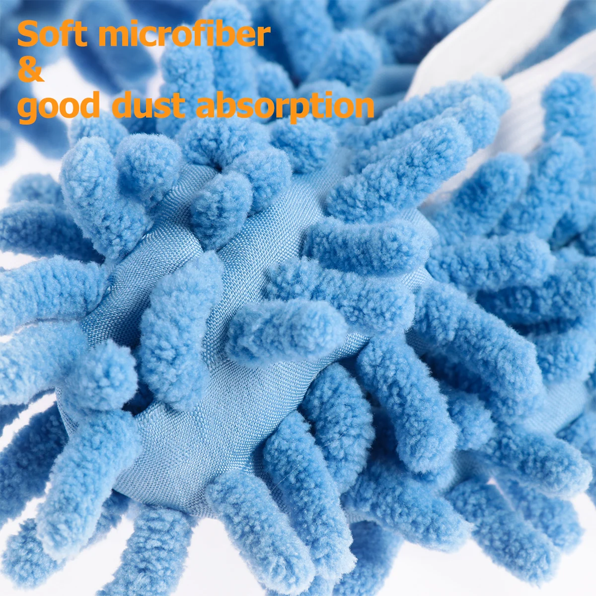 -Мягкие и тонкие швабры из микрофибры, противоскользящие и с отличной производительностью в адсорбировании пыли, грязи, волос, чтобы обеспечить лучший опыт в уборке дома.