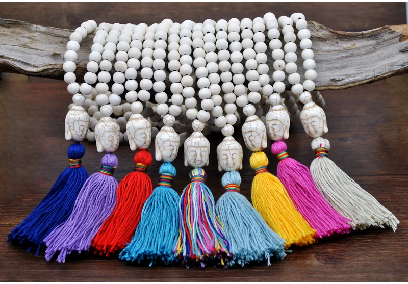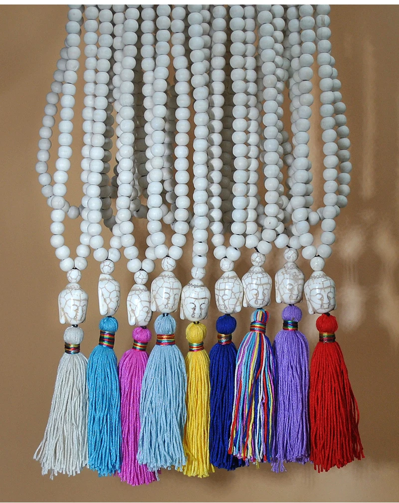 9 цветов на выбор, длинное ожерелье Будды с кисточками