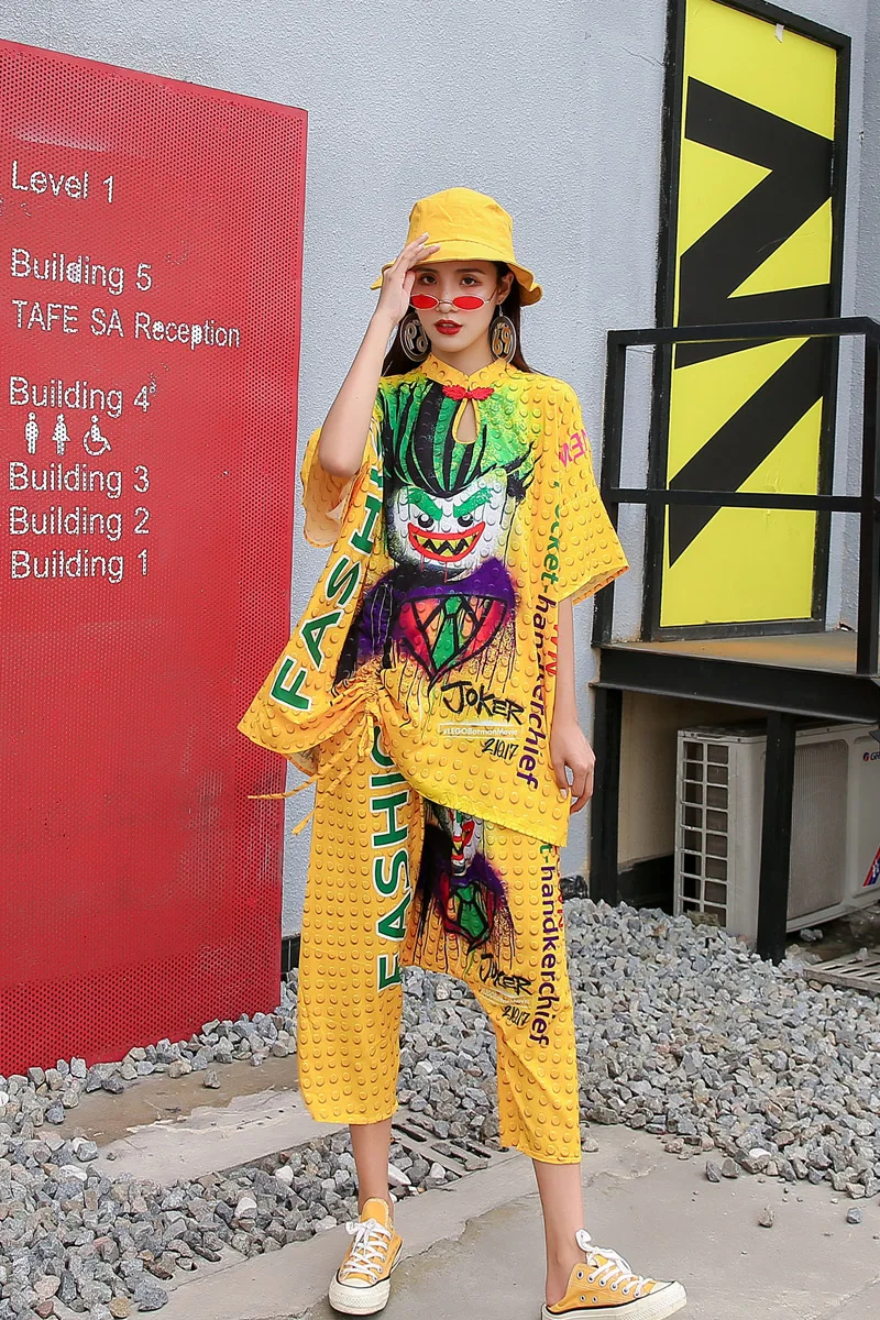QING MO 6 стилей женский мультяшный комплект 2020 женская футболка на шнурке + длина до икры