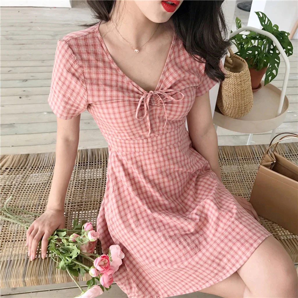Модное повседневное женское платье с v-образным вырезом и коротким рукавом