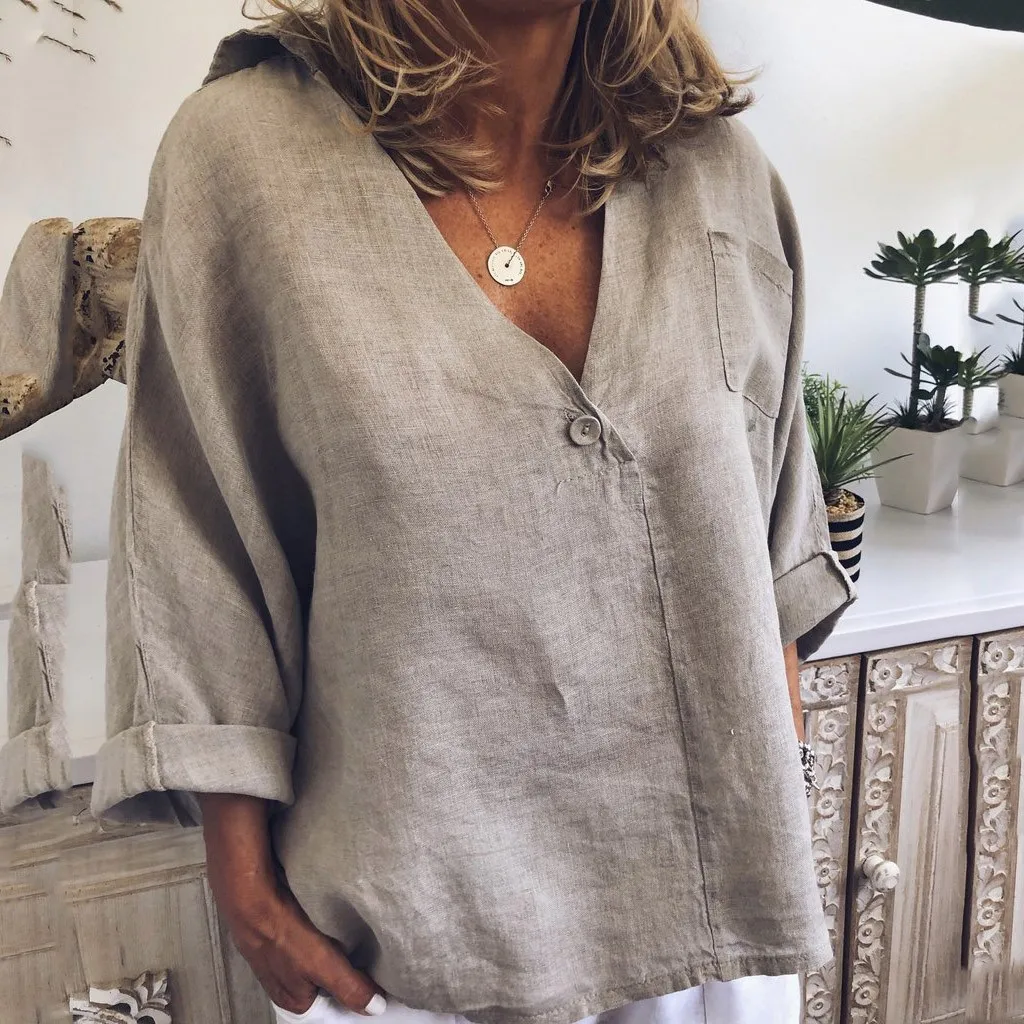 Женская модная Повседневная Блузка с v-образным вырезом и карманом размера плюс Женская модная летняя майка, лучше всего подходит для шорт, юбок, джинсов и леггинсов.