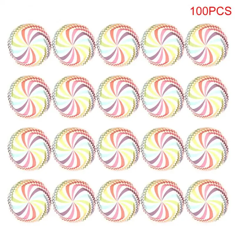 Великолепная Радуга-одевайте маленькие пирожные с серией красочных накладок для торта.Лоток для бумаги-3,2 см в высоту, диаметр дна-5 см, для полости рта