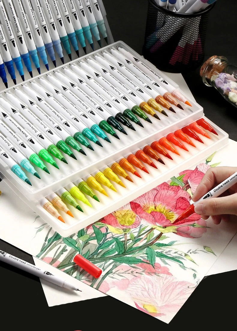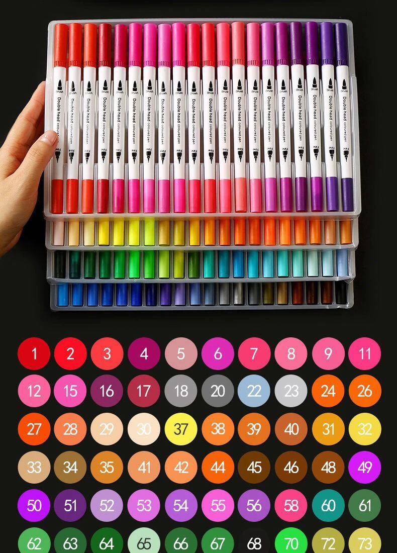 Художественный маркер 24/36/48/72/100 шт. Цвета тонко пишущие рисования акварельные маркеры двойной наконечник кисть школьные принадлежности