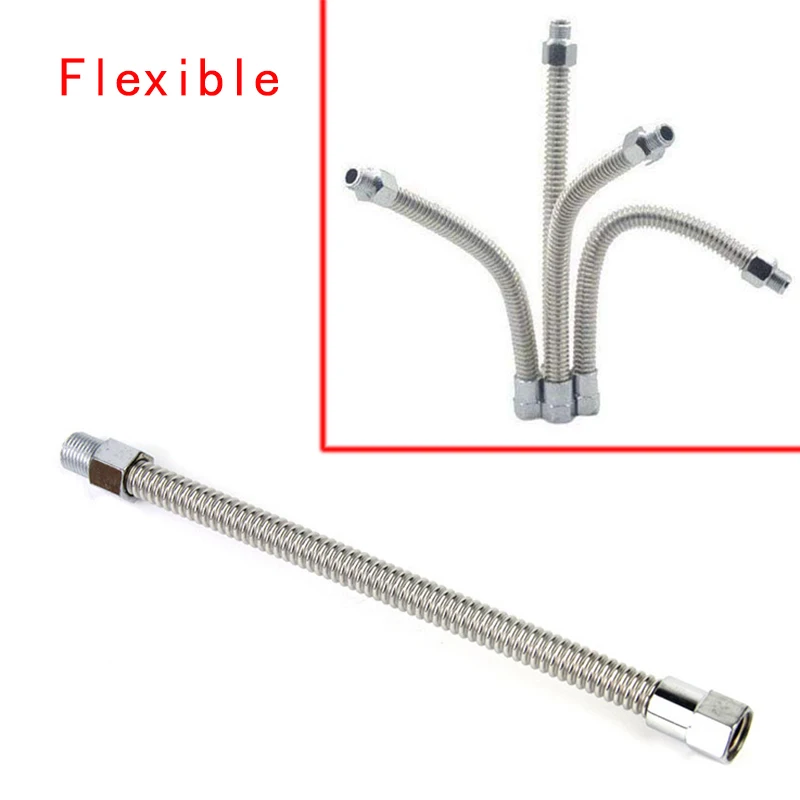 Наш водяной пистолет набор включает в себя 9 дюймов гибкий шланг, который может быть согнута под любым углом. Перед лицом различных объектов использования, вам нужно только правильно согнуть металлический шланг. Вы можете мыть некоторые места, которые не легко чистить, не сгибаясь. Это легко и удобно.