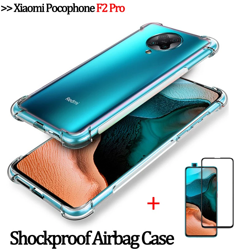 2-в-1 стекло + 360 Полное покрытие чехол для Xiaomi Pocophone F2 Pro подушка безопасности для чехол pocofone f2 Прозрачный чехол для телефона xiomi poco f2pro задняя крышка