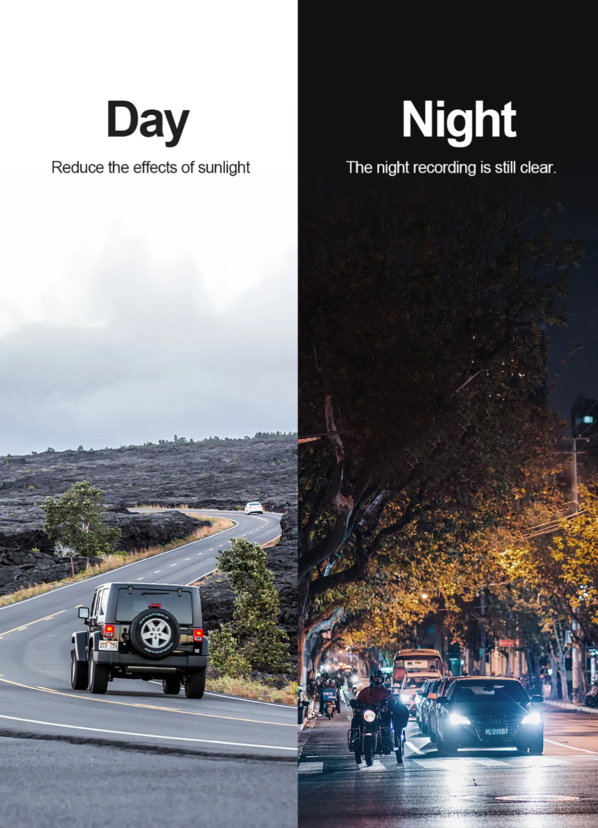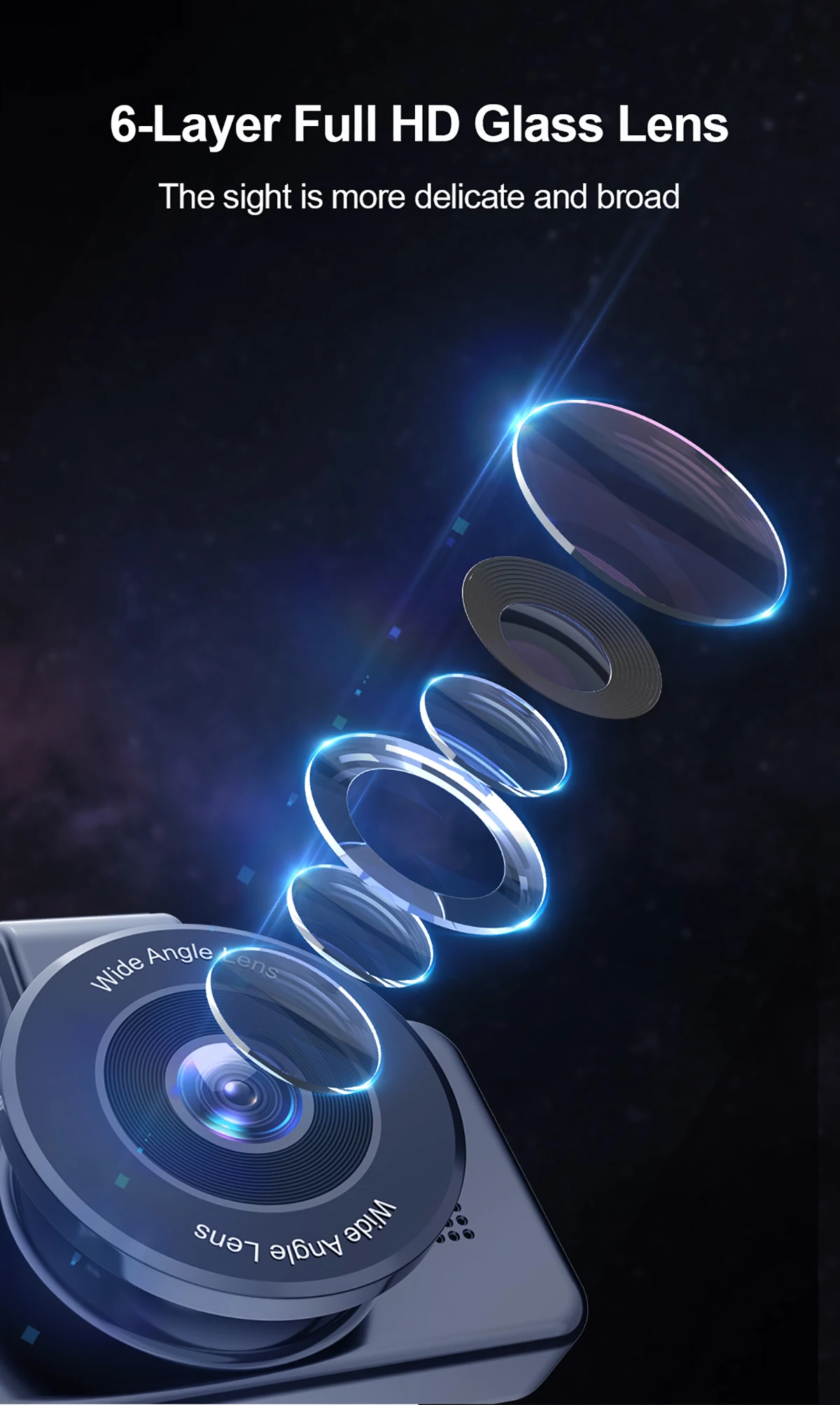 Наш видеорегистратор, оснащенный диафрагмой F2.0 и 6 стеклянными линзами, может значительно улучшить режим ночного видения и получить четкие, точные цвета изображения.