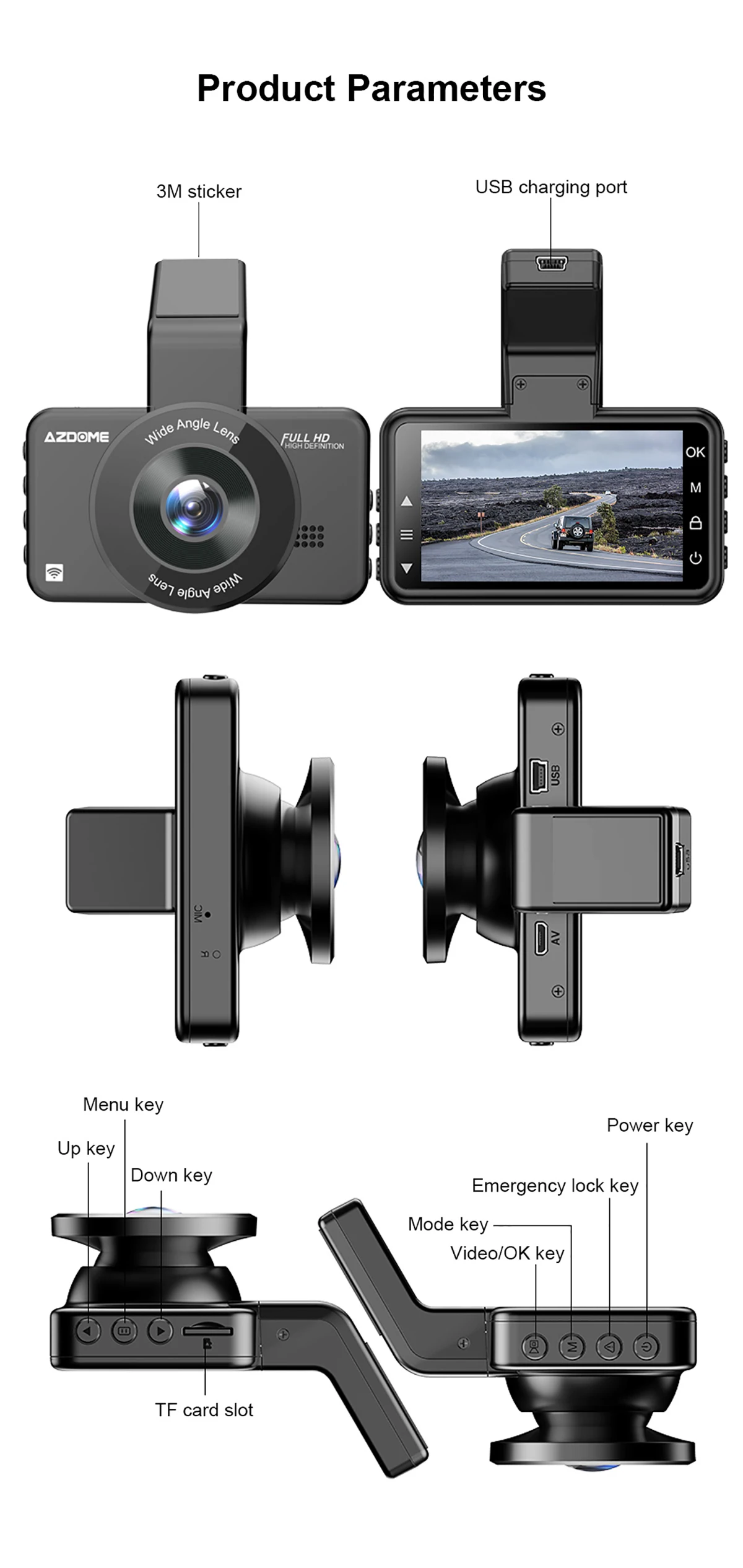 M17 dash cam pro поддерживает запись видео 1080P, т. Е. Размер видео-1920*1080 пикселей.