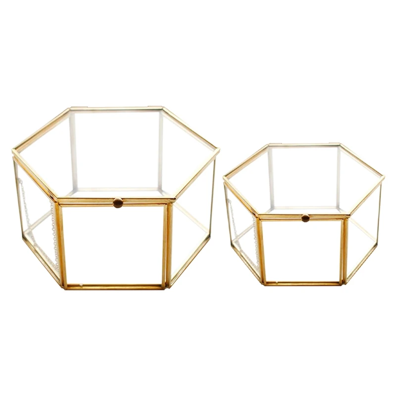 2Pcs Geometrical Clear Glass Jewelry Box Jewelry Organize Holder Tabletop Succulent Plants Container Home Storage