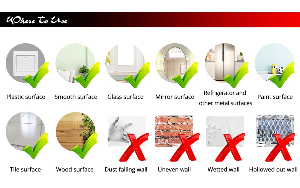 1. Убедитесь, что прикрепляемая поверхность гладкая, что на ней имеются выпуклости, вогнутости и морщины. Не прилипайте.