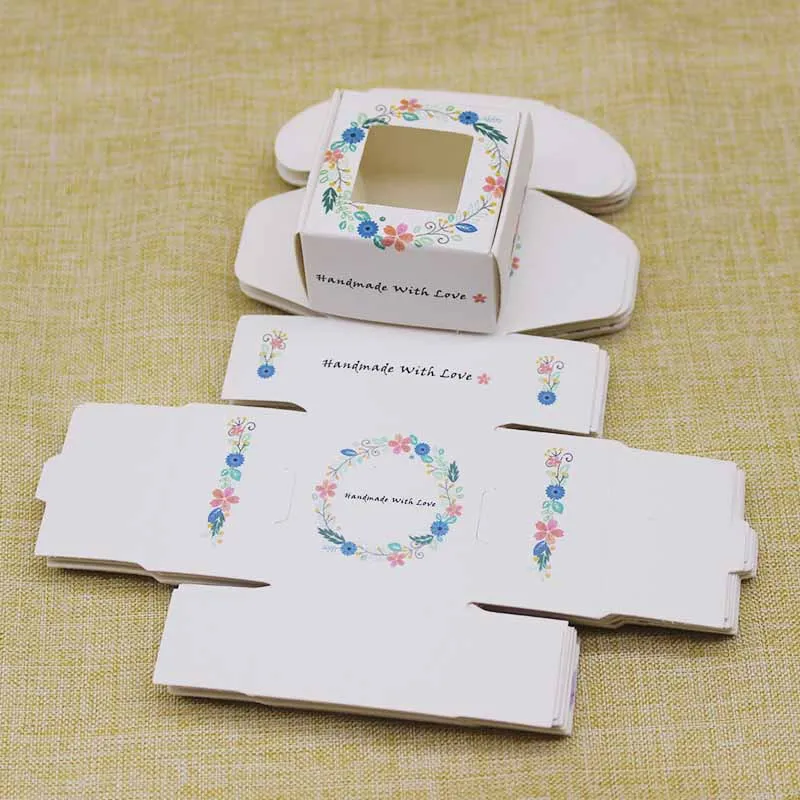 Название оконной коробки | Новые подарки ручной работы посылка коробка с окном 4*4*2,5 см белый/крафт Печать мраморный цветочный узор Мыло Свадебные Сувениры Коробка | |
