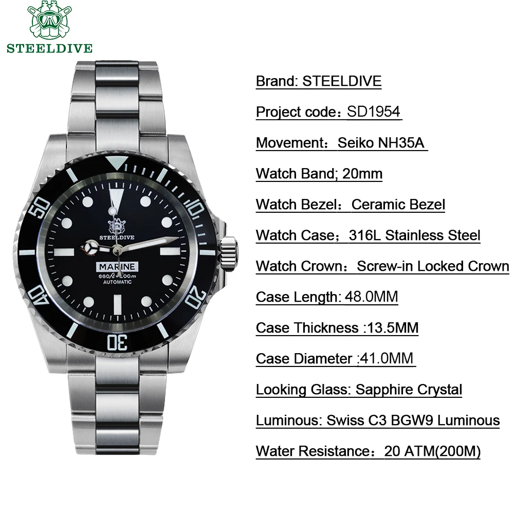 Стальные погружные часы 1954 года, часы NH35A с сапфировым кристаллом, часы для ныряния 200 м, Oman Sultan ref. 5513/5514, стальные часы для дайвинга BGW9 C3, светящиеся