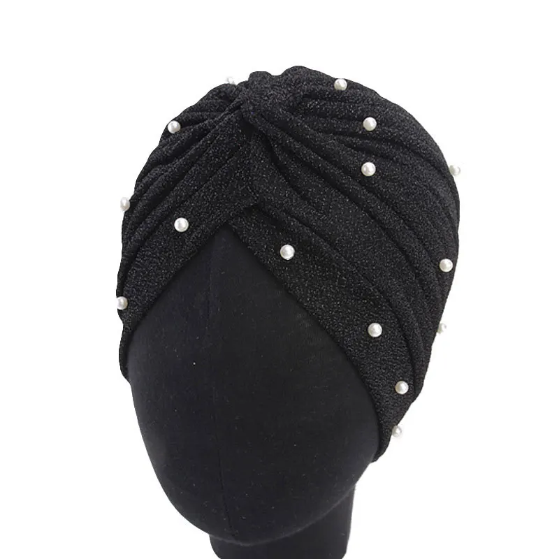 Хиджаб для мусульманок, блестящий тюрбан, золотой Блестящий Жемчуг, украшенный бусинами, обруч на голову, индийская Кепка