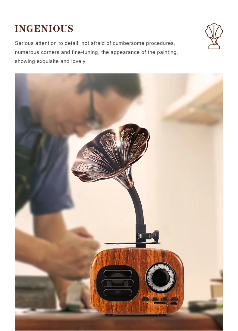 Беспроводной громкий динамик Ретро деревянный портативный мини bluetooth-динамик звуковая система TF fm-радио музыкальный сабвуфер