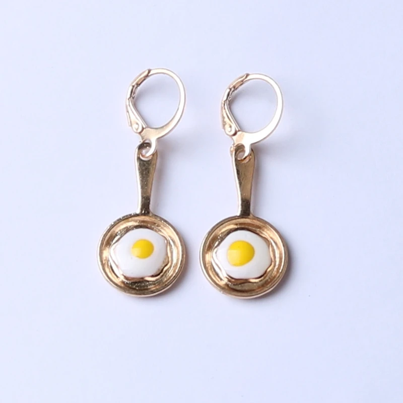 Жареное яйцо серьги, серьги с пищевыми продуктами, жарки серьги сковорода, милые серьги, каваи, идея подарка