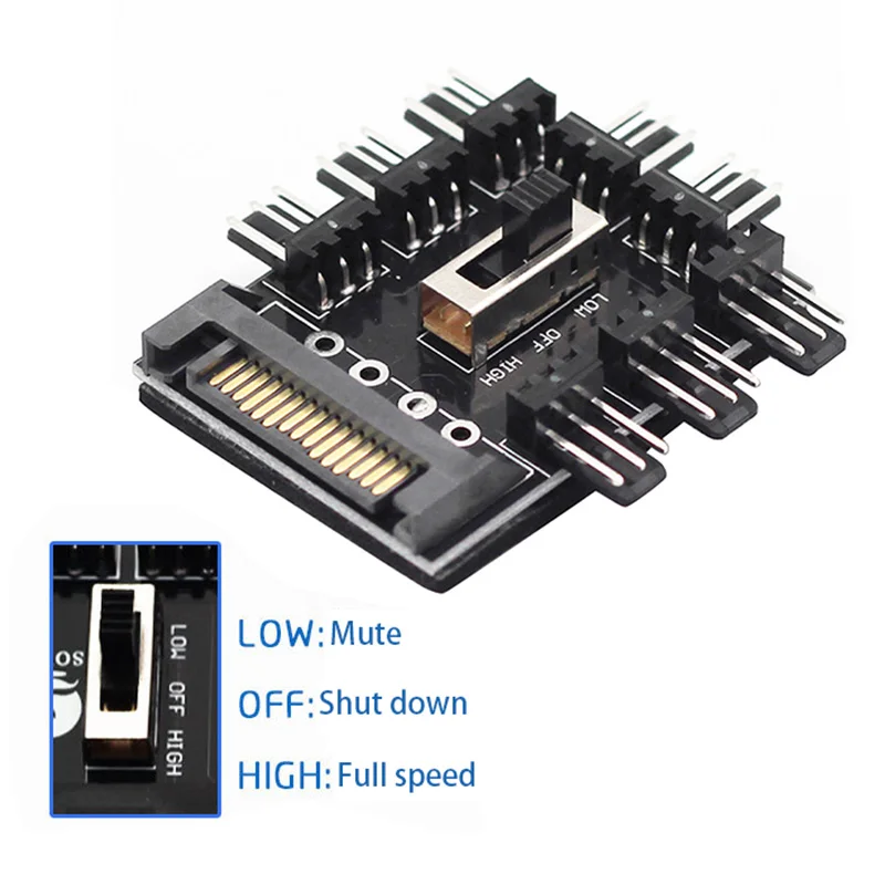 Поддержка 8-канального вентилятора: регулятор может быть подключен к 8 вентиляторам, поддержка 3-контактных/4-контактных интерфейсных вентиляторов, и может использоваться как концентратор вентилятора с функцией регулирования скорости