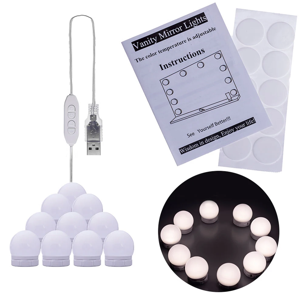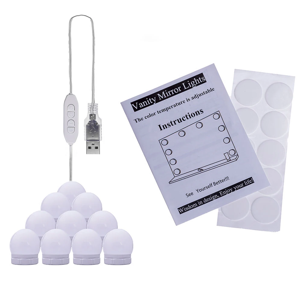 1 нить зеркальной лампы (10 шт. ламп в комплекте, зеркало для макияжа в комплект не входит)