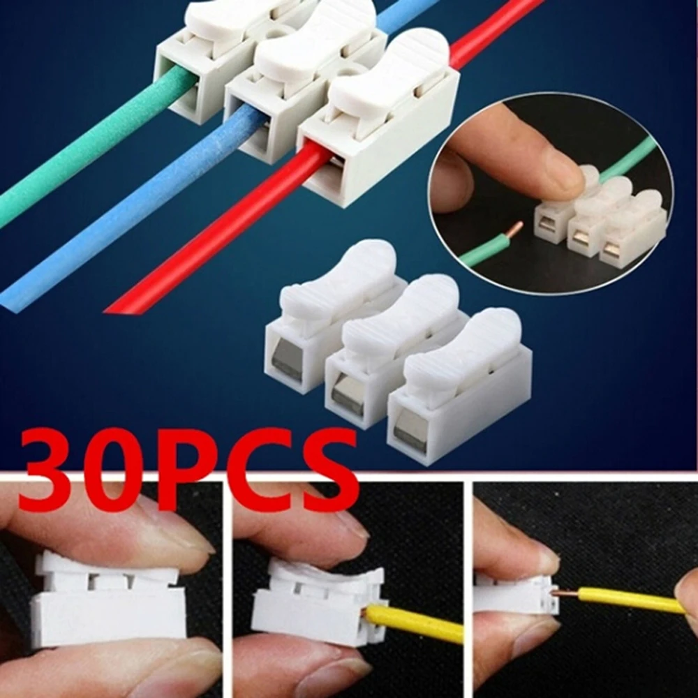 30 шт., белый, без пайки, сварка, быстрый 2P кабель, провод, разъем, без винтового клеммного блока, пружинный зажим Детали упаковки: 30 шт 2P Пружинные соединители
