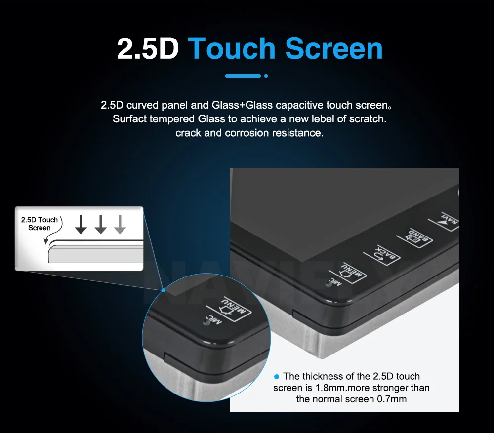 > 2.5D абсолютно новый IPS сенсорный экран, тренд, мода, с полносенсорными кнопками, отказывается отстать, > 178 угол большой угол обзора, точный цвет, высокая плотность пикселей обеспечивает потрясающе яркие видео и визуальные эффекты.