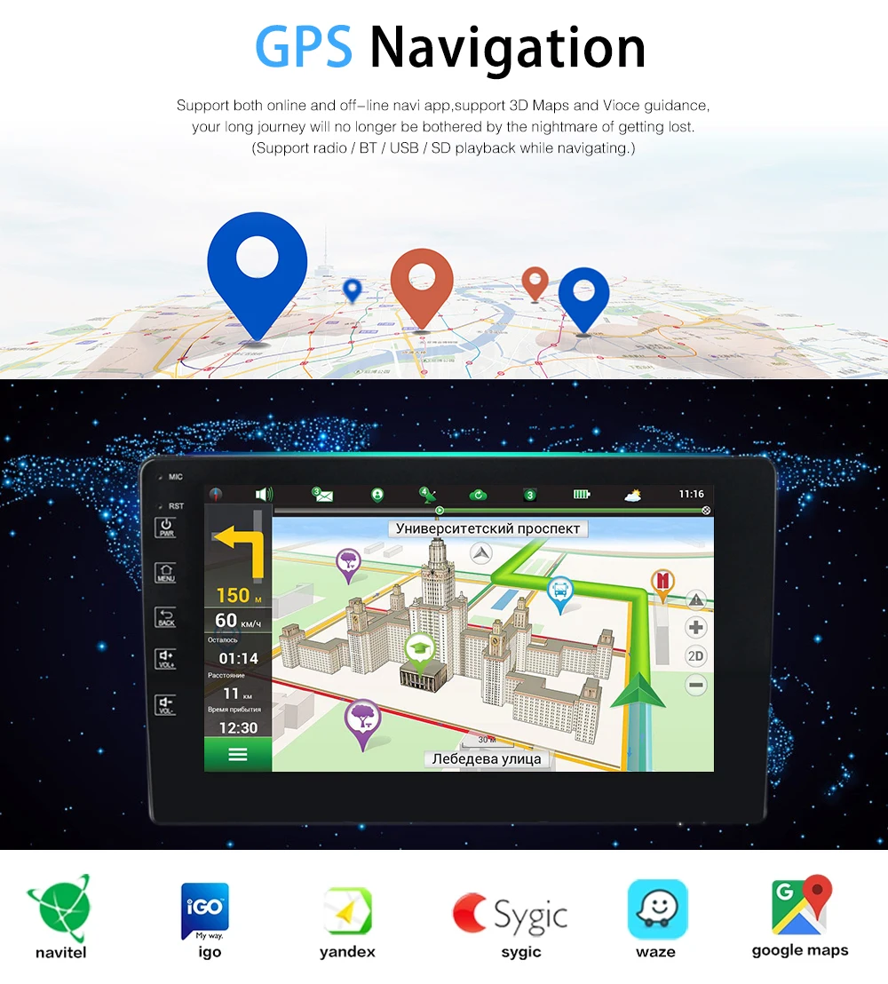 Благодаря сети 4G и встроенному Wi-Fi вы можете наслаждаться серфингом в Интернете независимо от того, где вы находитесь, сделать его возможно для онлайн навигации/музыки/кино и т. Д. Вставьте sim-карту перед включением устройства.