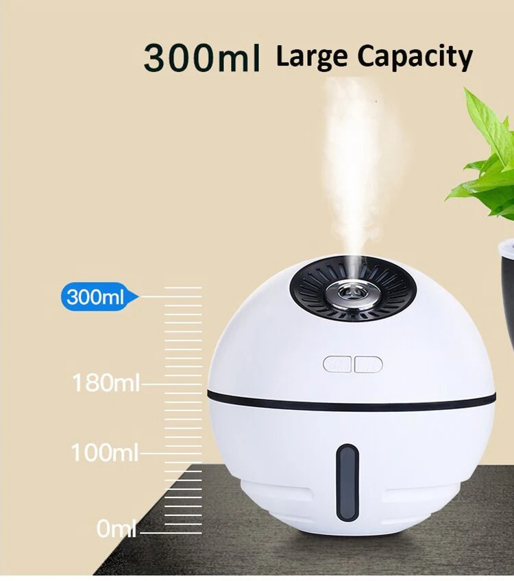 Ультразвуковой увлажнитель воздуха 300 мл, 2000 мАч, на батарейках, Космический шар, портативный Ароматический диффузор эфирного масла, светильник-вентилятор, Fogger