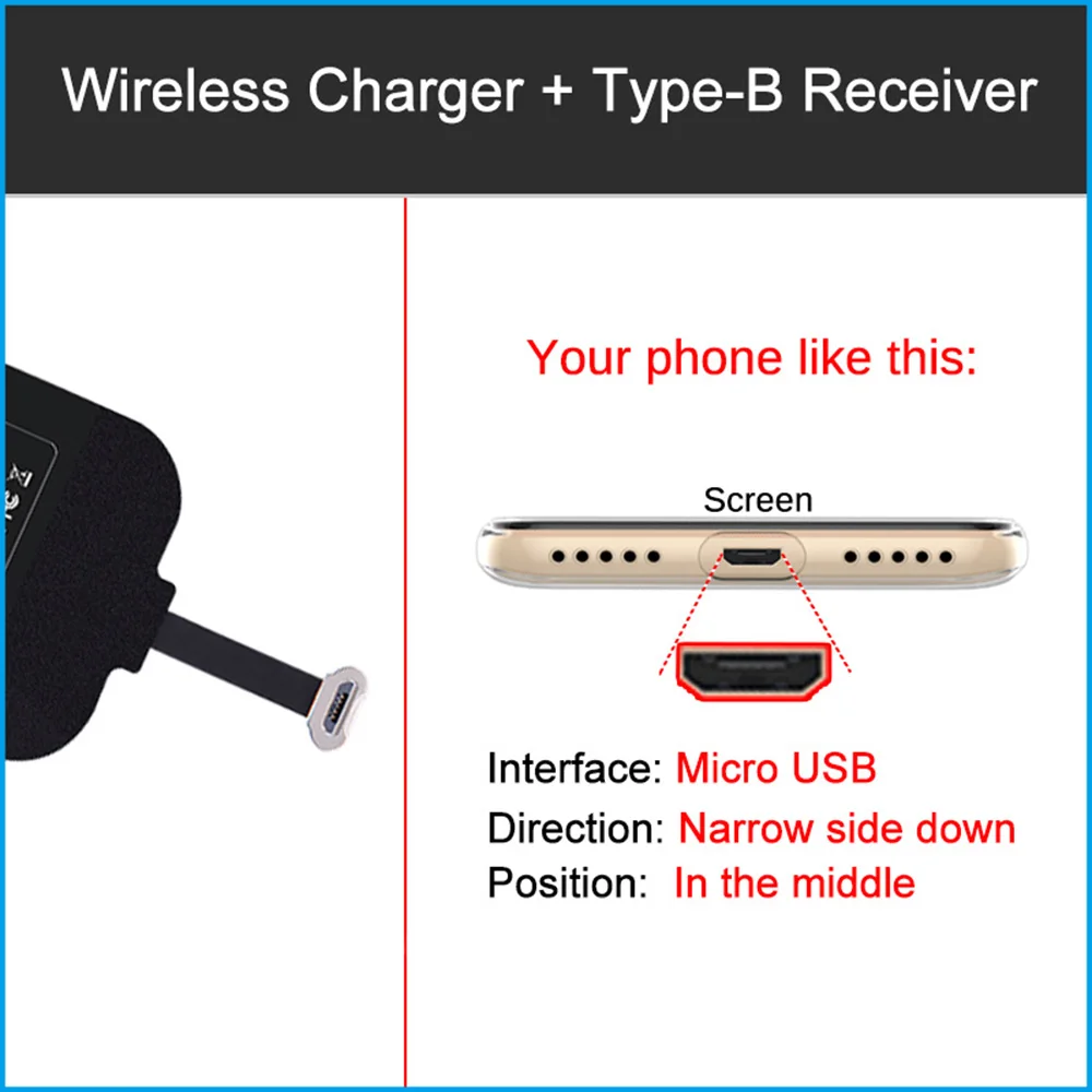 Enjoy wireless charging immediately by plugging into charging port and connecting the receiver onto phone's back cover. It becomes universal that phone without metal contact or with undetachable back cover can be wireless charged efficiently.