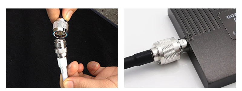 Шаг 2:Используйте кабель 10 м для подключения наружной антенны и бустера. Убедитесь, что они были затянуты, соединены хорошо.