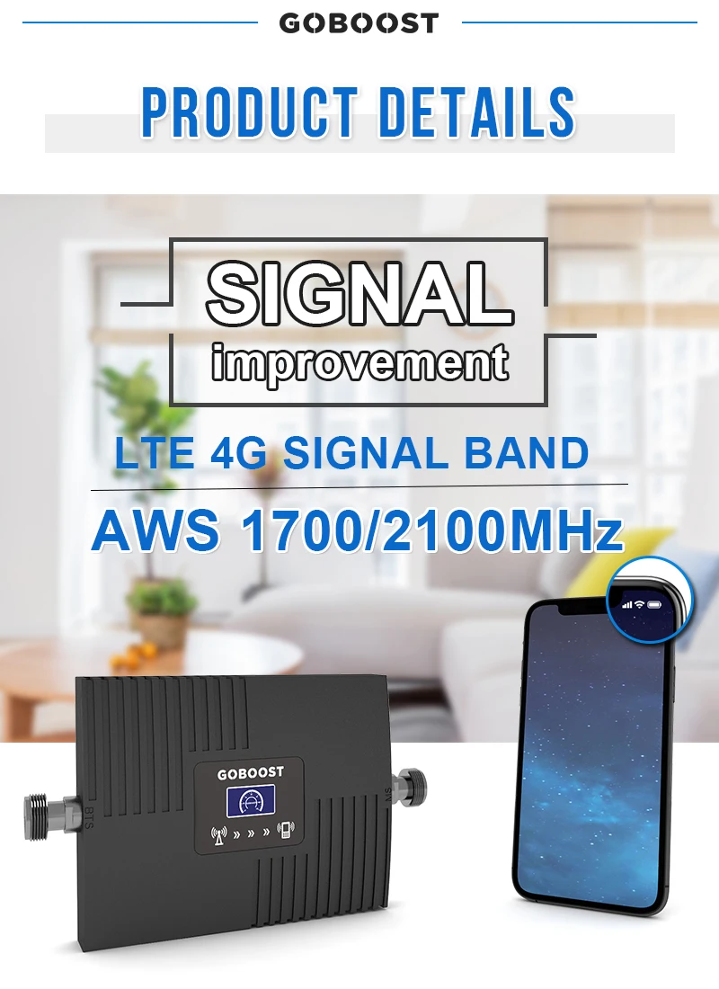 GOBOOST 3G 4G усилитель сигнала AWS 1700 2100 MHz Ретранслятор Мобильный телефон Сотовый усилитель B4 B66 антенна + 10 метров коаксиальный кабель комплект