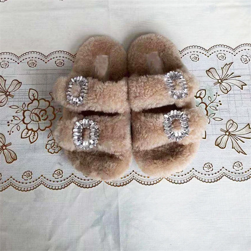 Женские пушистые шлепанцы сланцы из искусственного меха мягкая обувь на плоской