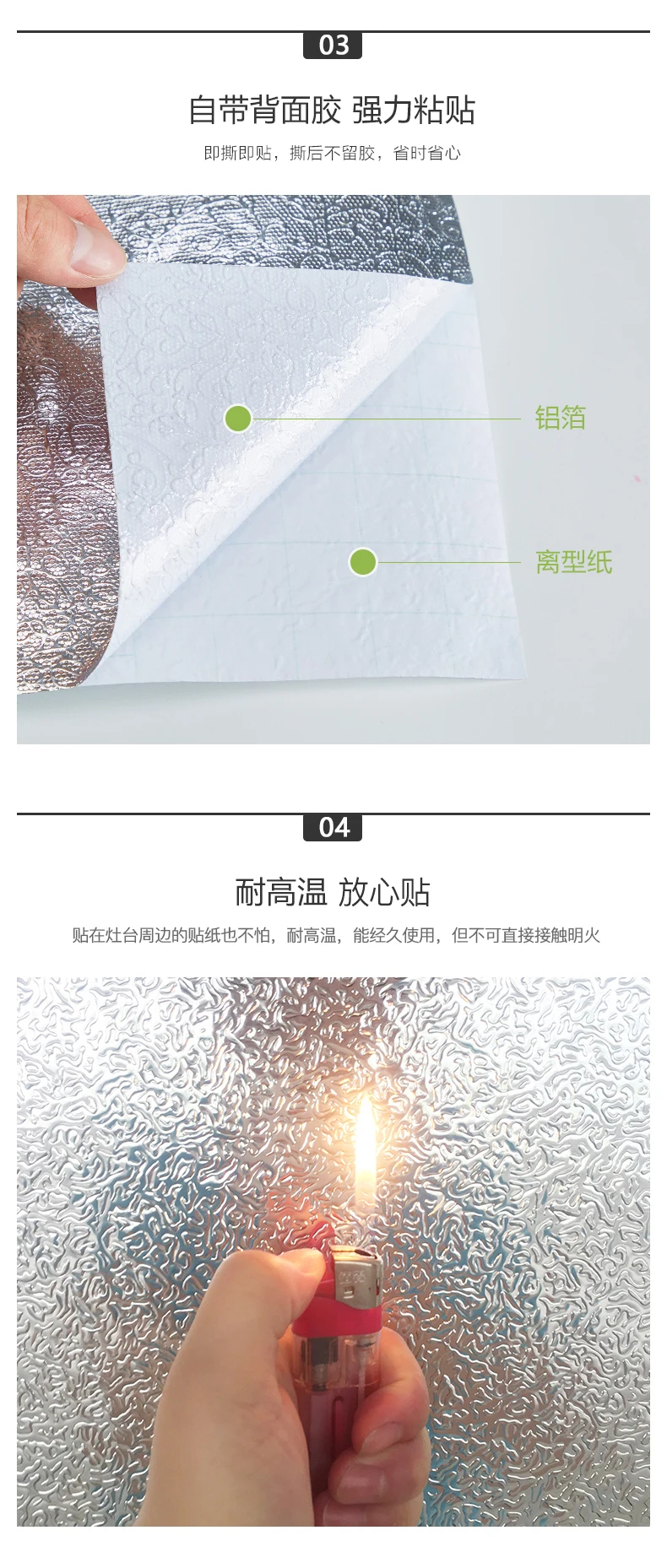 Item Name: New Kitchen Wall Stickers Waterproof Oil-proof Self Adhesive Wallpaper Aluminum Foil High-temperature Removable Sticker Film