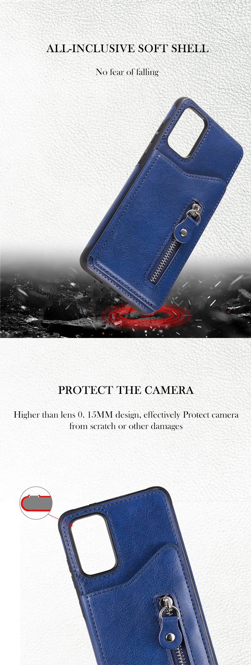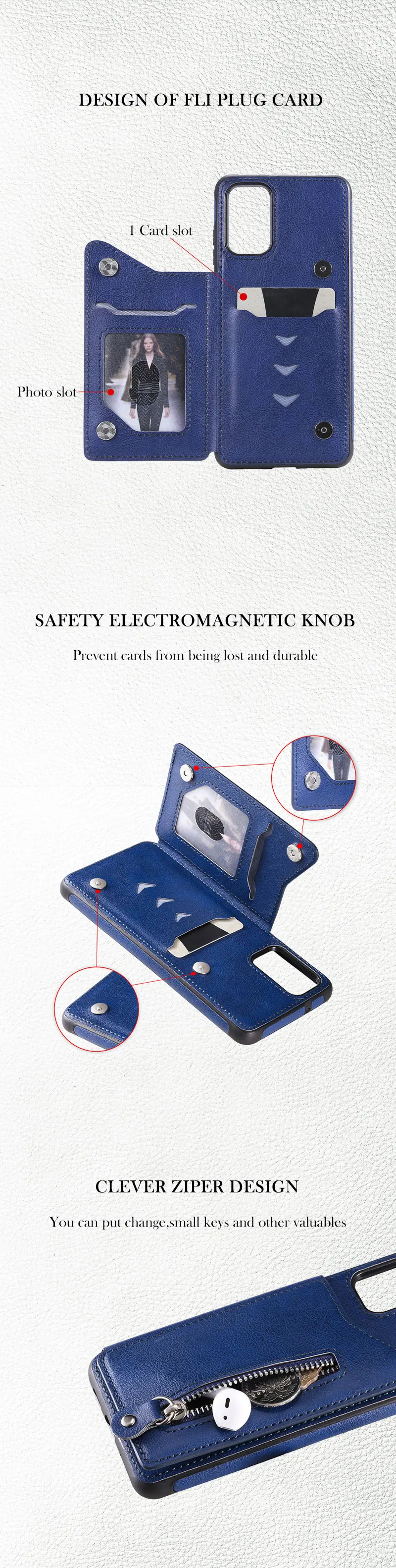 Чехол-подставка для телефона из ТПУ с покрытием из искусственной кожи с карманом на молнии для Samsung Galaxy S20 Ultra S10 Note 10 Plus