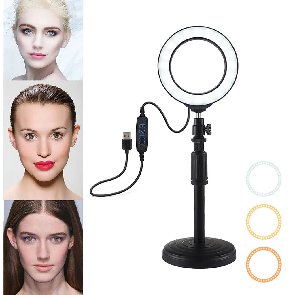 Кольцевой светильник 4,7 дюймов с настольной подставкой USB 3 режима светодиодный кольцо видео фон для фотосъемки