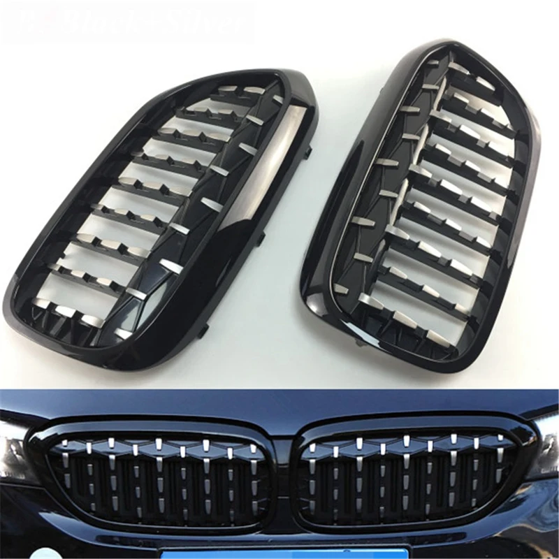 1 пара Передняя ножка решетка для Bmw Новая 5 серия G30 G38 2018-2019 решетка метеоритный стиль передний черный и серебристый бампер Гриль автомобильный стиль